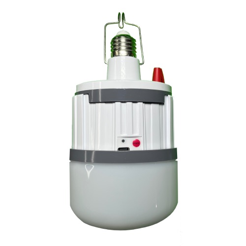 APLICATIVOS: Luz Led de 40W, equivale a 300W en incandescente, portable colgante o fijo a boquilla, recarga a través de boquilla o cable tipo C, tiempo de carga-descarga 4-8h, tiempo de vida 50000h, angulo de haz 180 grados, incluye 3 baterias recargables